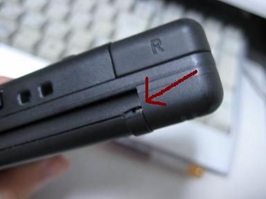 DSってフタが完全に開く前に1回丁度プレイしやすい位置でカチッと止まると思うんですけど(説明下手ですみませぬ)、ここが壊れたおかげでフガフガになってその機能がきれいさっぱり失われました。まあプレイできなくなったわけではないのですが、フタが完全に開いた状態って微妙にプレイしにくいw