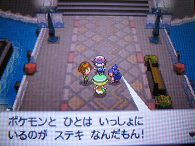 まずは観光!と思ったら育て屋のじいさんがプラズマ団に絡まれていているではないか!確かに育て屋にはたくさんポケモンがいるだろうしねえ・・・ってアニメのロケット団みたいな発想ですなあ、プラズマ団。バトルに勝利後、じいさんから自転車をゲット。おお、今回はピタッと止まれて使いやすそう!あ、もしかしてこれで育て屋に2匹預けるのが解禁なのかも。後で確認に行かねば!それにしてもばあさんを置いて一人で観光とは・・・。