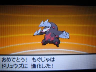 パーティで唯一砂嵐を無効にでき、砂掻きで頑張っていたもぐじゃがドリュウズに進化!