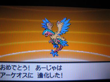 ややカタコト気味のお姉さんにより無事、さいこどりポケモンのアーケンが復元!今更ながらパーティ全員がオスということに気付いたので今回はメスが出るまで粘ってみました。後々育成するときにもメスだと便利だし。しかしさすが化石ポケモン、時間掛かったよー;