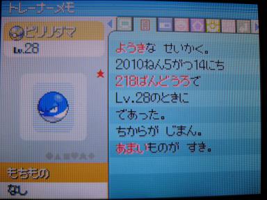 ビリリダマといえば、その体色からモンスターボールと間違われることがあるそうですが(ちなみに身長50cmです;)、色違いのビリリダマはスーパーボールやダイブボールあたりと間違われたりするのでしょうか?あ!だったらどっちかのボールでゲットしておけば良かった・・・(クイックボールでゲットしました)