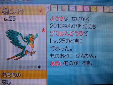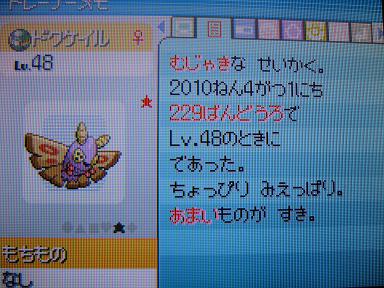 でもこれ慎重を狙ってたのに無邪気なんですよね、よりによって。モルフォンの時もシンクロ成功したのは6体中2体だけだったし、なかなかシンクロ成功しないなあ・・・。一応特防はVでHPも高めなんですけど、慎重とは雲泥の差だし・・・もう1回慎重が出るまで挑戦してみようかな・・・どうしよう。^^;