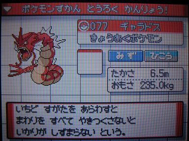 そして幾度かのリセットを繰り返し、赤いギャラドスゲット完了です!